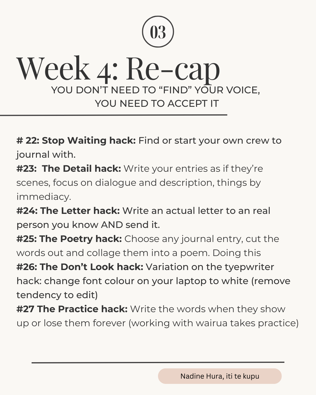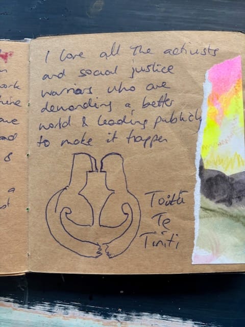 Ghadaam!! I never did get around to posting up that bonus journaling episode. Unsurprisingly, it was a bridge too far on the week of moving and planning a housewarming slash surprise-wedding. I did all the prep for that post, including a podcast-style interview with Anahera Gildea, and I'll aim to publish it some time next week. I know a few people are still working through the posts, so as a reminder there's four blogs with about 27 hacks and a range of examples from my own journals. You can find them all here . Thanks to everyone who participated and let me know how it went - and I'M SORRY if I haven't replied to your email yet.