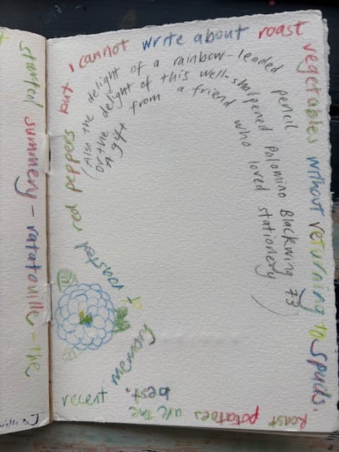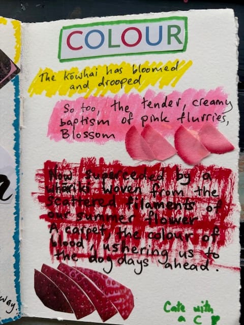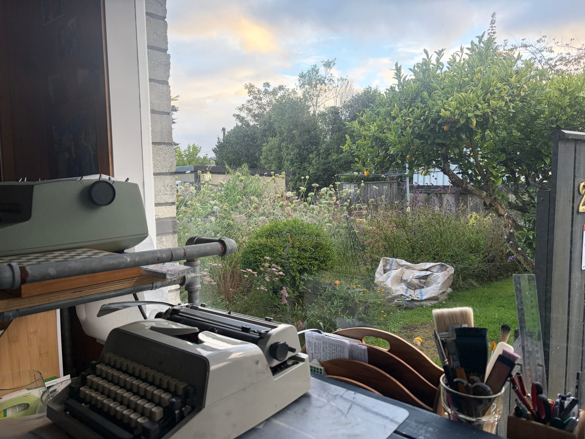 Kia ora my friends, I'm gonna take a leaf out of my own (journaling) playbook and start exactly where I am: looking out a different window to a different view. Gone is the sea and the rumbling commuter train. Gone too the fennel, and the green fence, now I'm looking at overgrown wildflowers in pink, purple, yellow and white, a lemon tree leaning full as bees run their pollen deliveries.