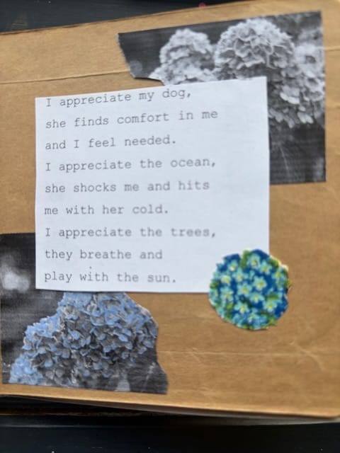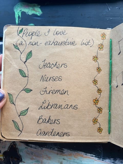 People I Love: A Chain-zine Chapbook of Appreciation (collage and typewritten submissions from multiple contributors), highlights include: storytellers, songwriters, dancers, activists, my son, my dog, the ocean.)