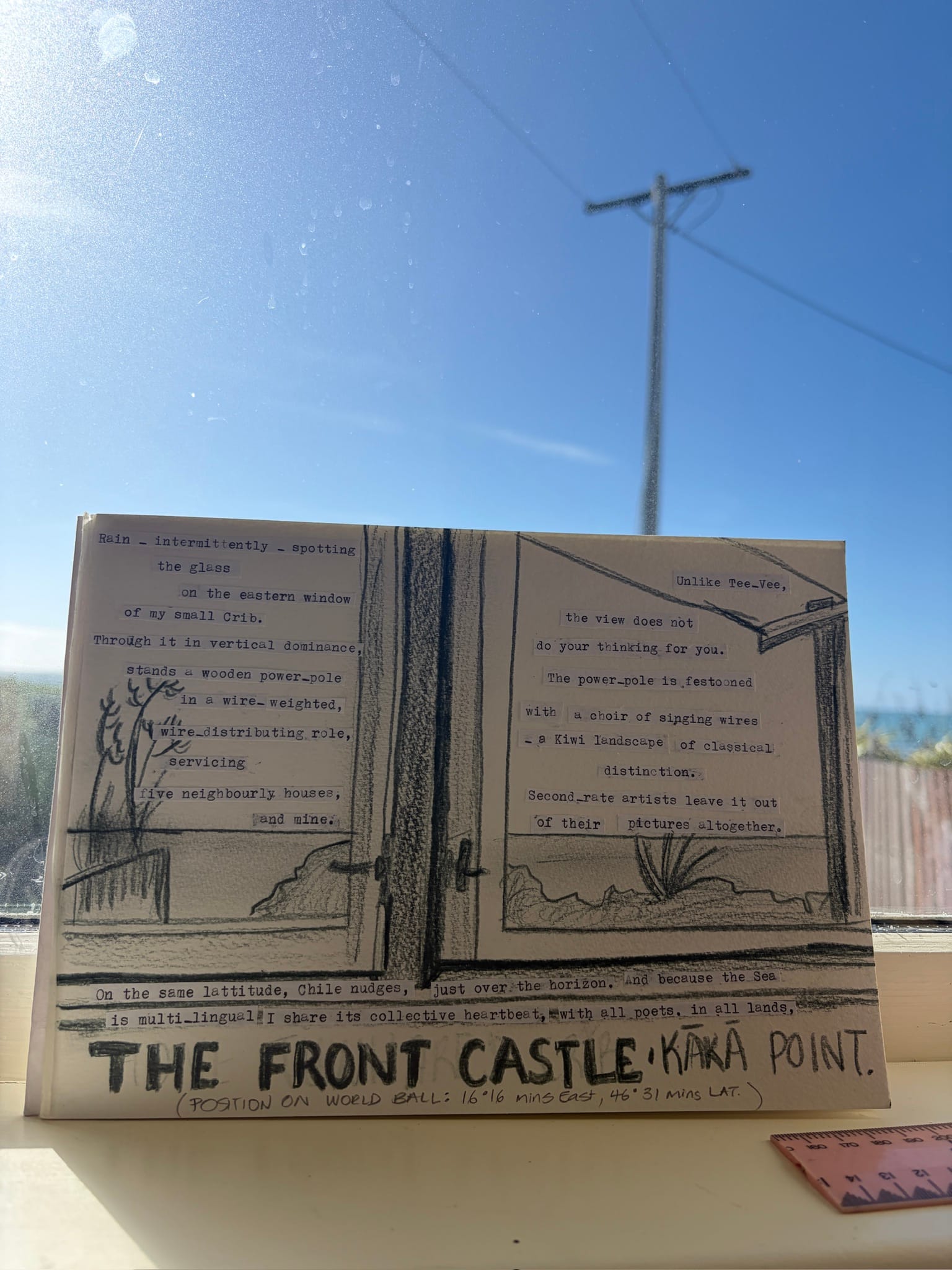 I'm here! At Kākā point. The Front Castle. Pāpā Hone's Crib. Latitude 46. Close enough to the ocean it feels like the crib itself is floating (and Hone did once describe himself as a boat, though there's plenty of innuendo going on there, as always with him).