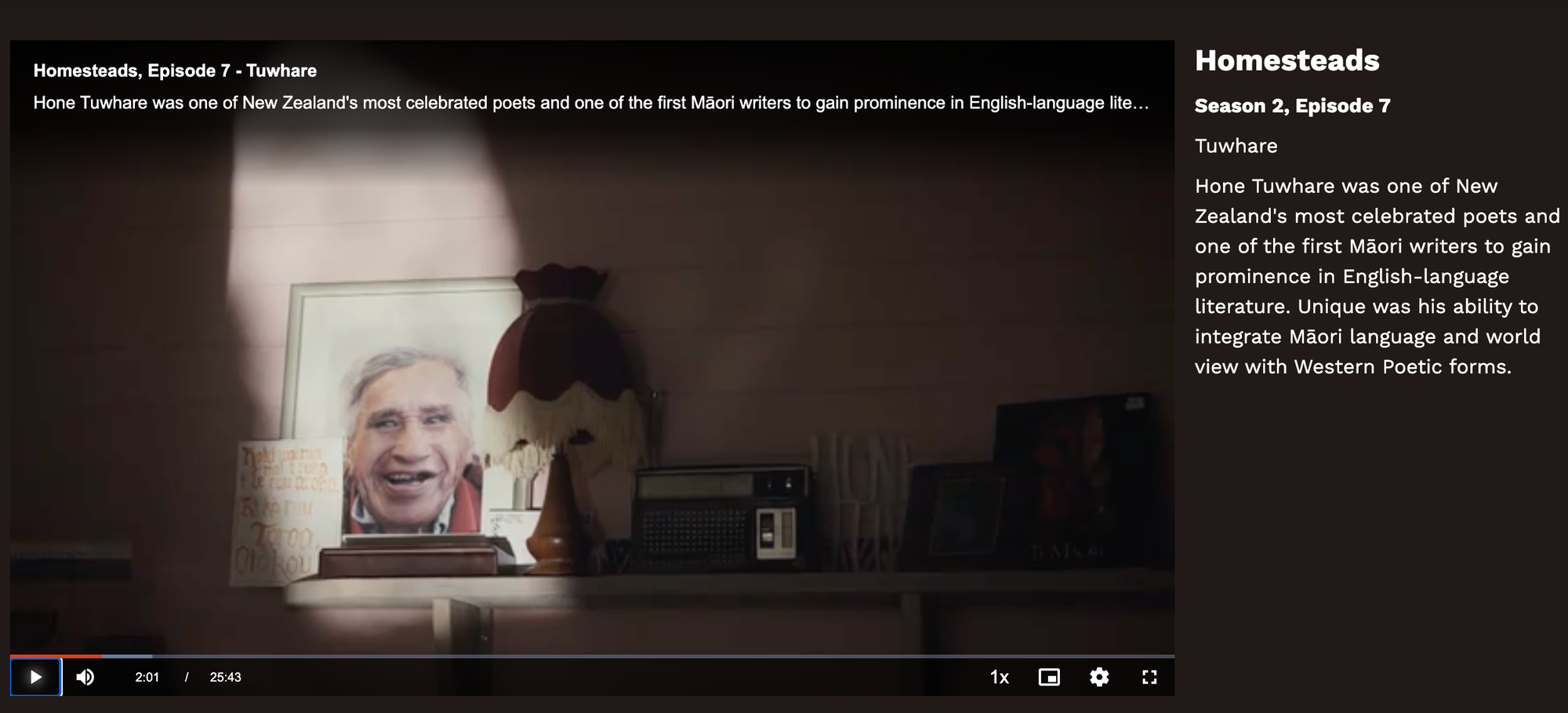 My favourite part of the day has been sitting up late listening to interviews and documentaries. I began with Gaylene Preston's 1996 film where Hone refers to the room I'm sitting in now as "the front castle". Then I re-watched the 2021 documentary Wind, Song and Rain featuring his granddaughter's poetry braided together with his in the most lovely intergenerational karanga. I've also been playing Don McGlashan's harmonica-infused interpretation of "Friend" on repeat (can't be found on Spotify, but must listen here at 7.35s).